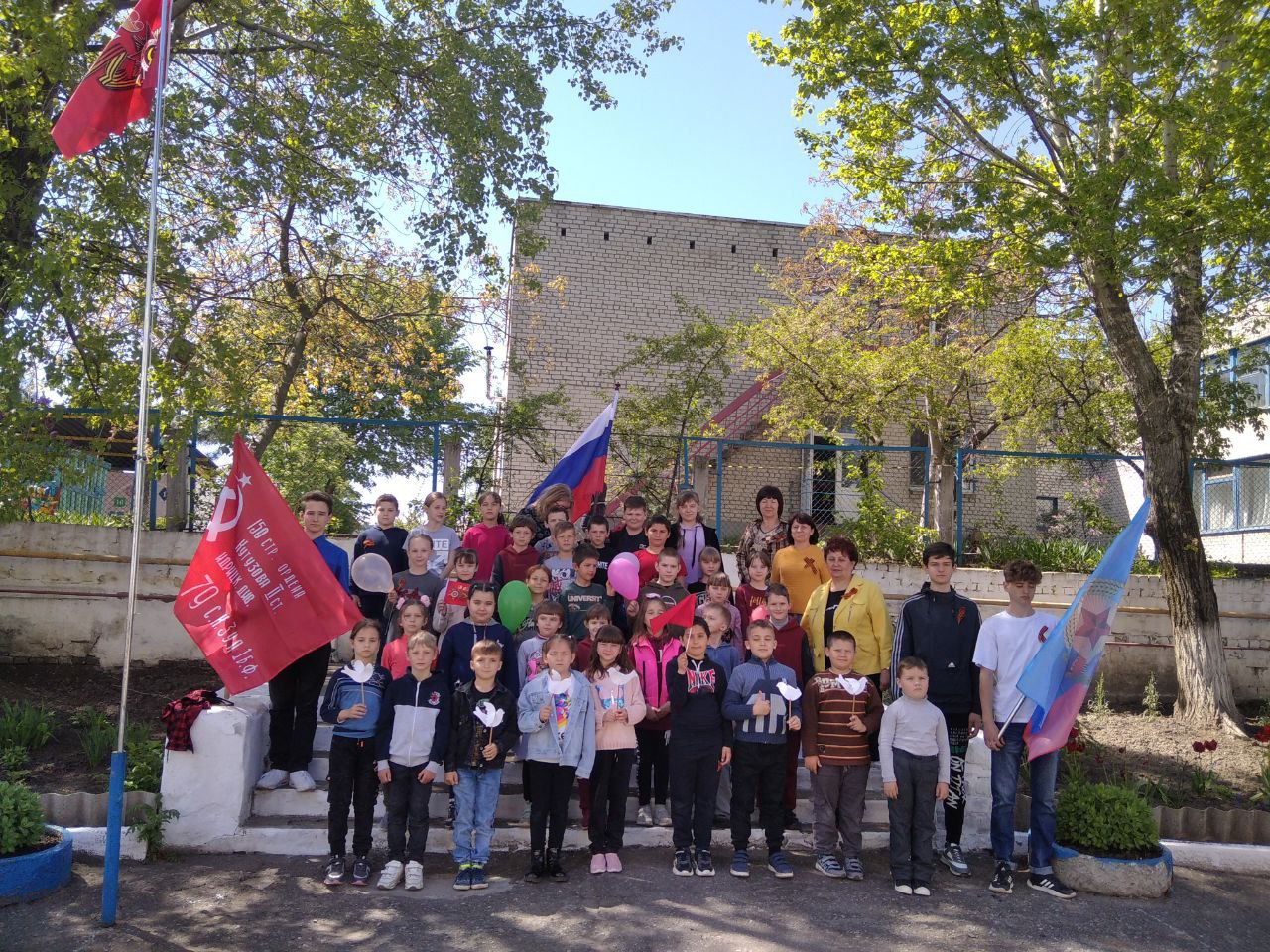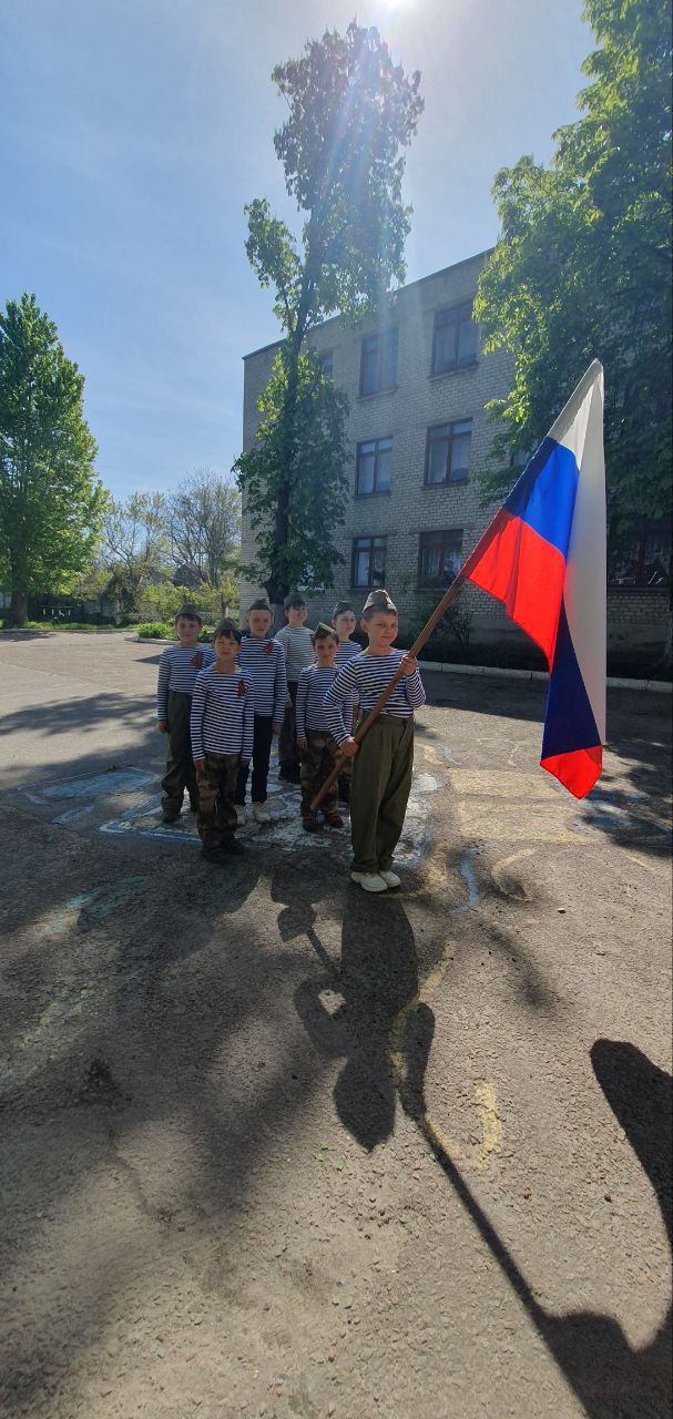 Дітям, які раніше жили у вільній та незалежній Україні, нав'язують так звану "любов" до Росії. Окупанти вихваляються виконанням гімну РФ і пісні про День перемоги. Також під час події школярі та вчителі віднесли квіти до братської могили. Людям промивають мізки, використовують прапори СРСР, якого вже немає понад 30 років.