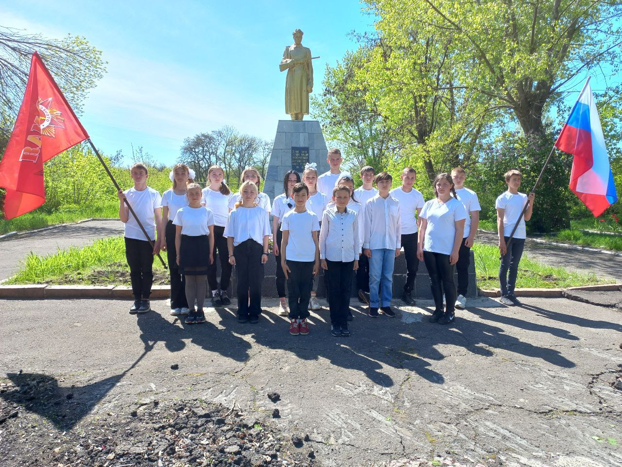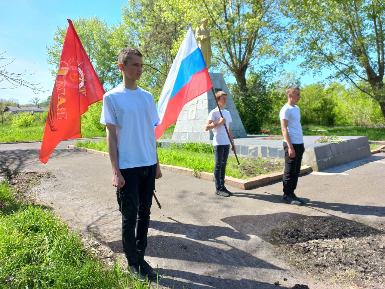 "Відбулася пам'ятна церемонія у монумента загиблим воїнам, яка сприяла не тільки збереженню історичної пам'яті, а й вихованню гордості за свій народ, за свою велику Батьківщину", — пише "адміністрація".