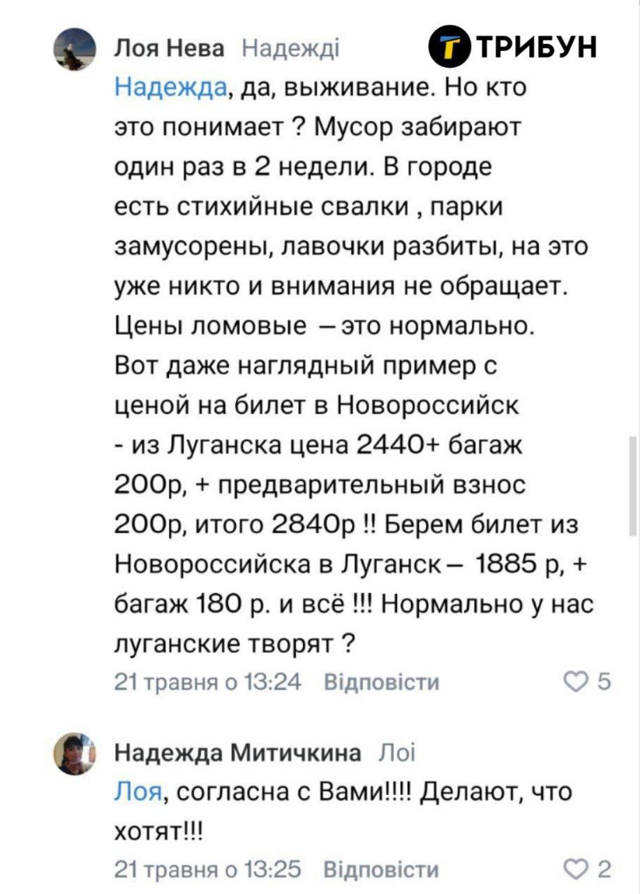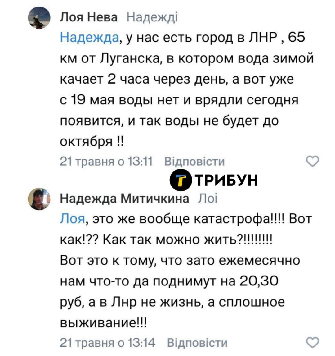 На території тимчасово окупованої Луганської області люди обурені різкими змінами тарифів та вартістю комунальних послуг. Проте вода взимку практично відсутня, але на ціну це ніяк не впливає. За продуктами та одягом люди взагалі вимушені їхати на "велику землю".