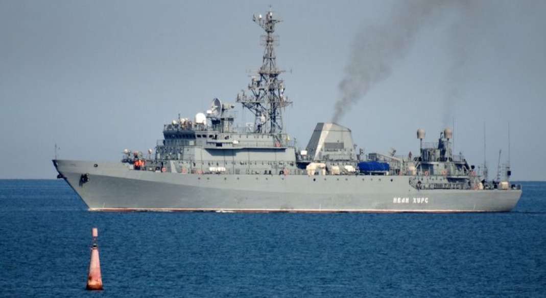 Довідка: "Іван Хурс" - російський середній розвідувальний корабель ближньої, далекої морської та океанської зони. У завдання корабля входить забезпечення зв'язку та управління флотом, ведення радіорозвідки та радіоелектронної боротьби, стеження за компонентами американської системи ПРО. Мав допомагати росіянам збивати ракети Storm Shadow, HIMARS, ATACMS.
