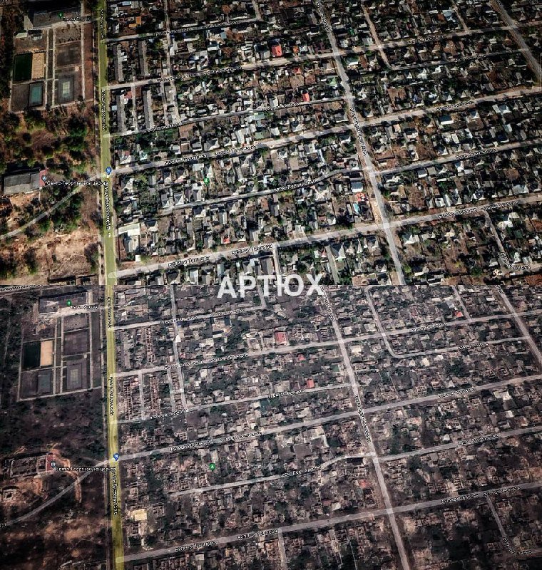 Google продовжує оновлювати мапу України. На зображеннях, які, ймовірно, було зроблено у травні 2022 року, видно масштаби руйнувань в окупованому Рубіжному Луганській області.