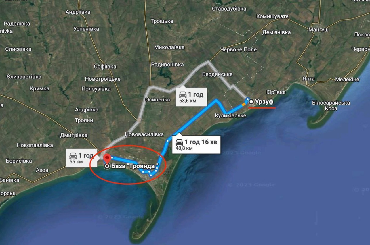 Місцеві повідломляють про влучання в місце концентрації окупантів в базі відпочинку “Троянда” с. Азовське Бердянського району. Після виникла пожежа. Зарево спостерігали понад годину", - написав Андрющенко у Telegram.