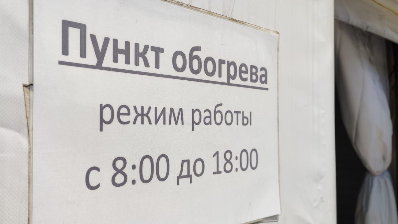 На зображеннях помітно, що так званий "пункт обігріву" знаходиться неподалік місцевого торгівельного комплексу "Мир". На оголошенні вказано, що він працює з восьмої ранку до шести вечора.