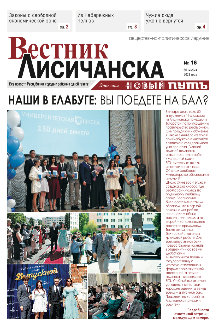 Газета має нехитру назву "Вісник Лисичанська". Очевидно, останній номер присвячений річниці окупації міста. Якщо не знати, що насправді відбувається у Лисичанську, то може скластися враження, що там справді все спокійно. Так, першу сторінку присвячено випускникам шкіл, які "з якихось причин" змушені були отримувати атестати не вдома.