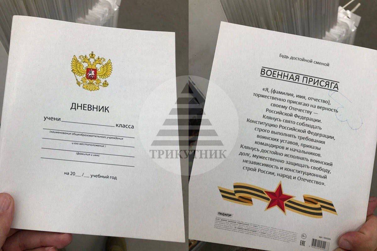 Тепер вони вирішили "обдарувати" дітей шкільного віку "новими" щоденниками, на яких зображена символіка країни агресора, а на зворотньому боці - військова присяга країні окупанту.