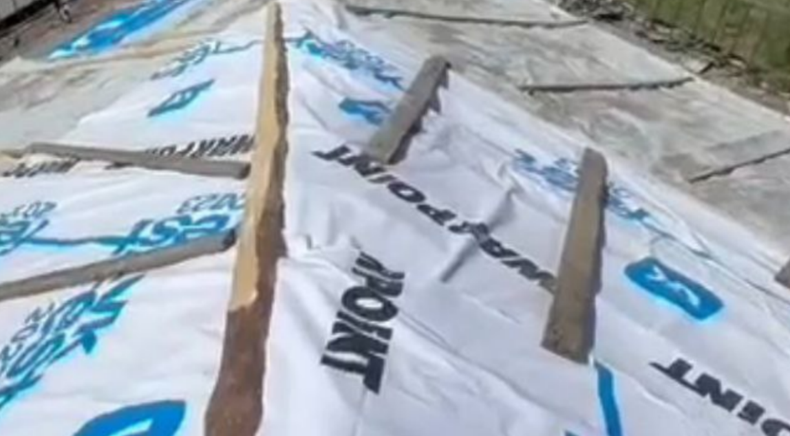 Як повідомляє "Kitsune / Сєвєродонецьк", волонтери "ремонтують" дахи будівель за допомогою рекламних банерів. Нагадаємо, що інформація про це з'явилась ще на початку серпня.