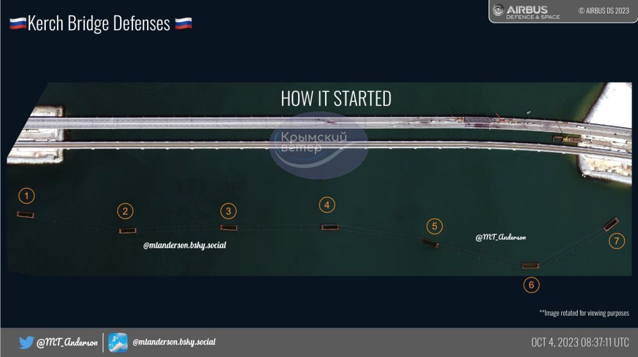 Але опубліковані OSINT-дослідником MT Anderson високоякісні знімки в оптичному діапазоні показують, що все однозначно - завдано сильної шкоди біля південно-східної частини мосту: