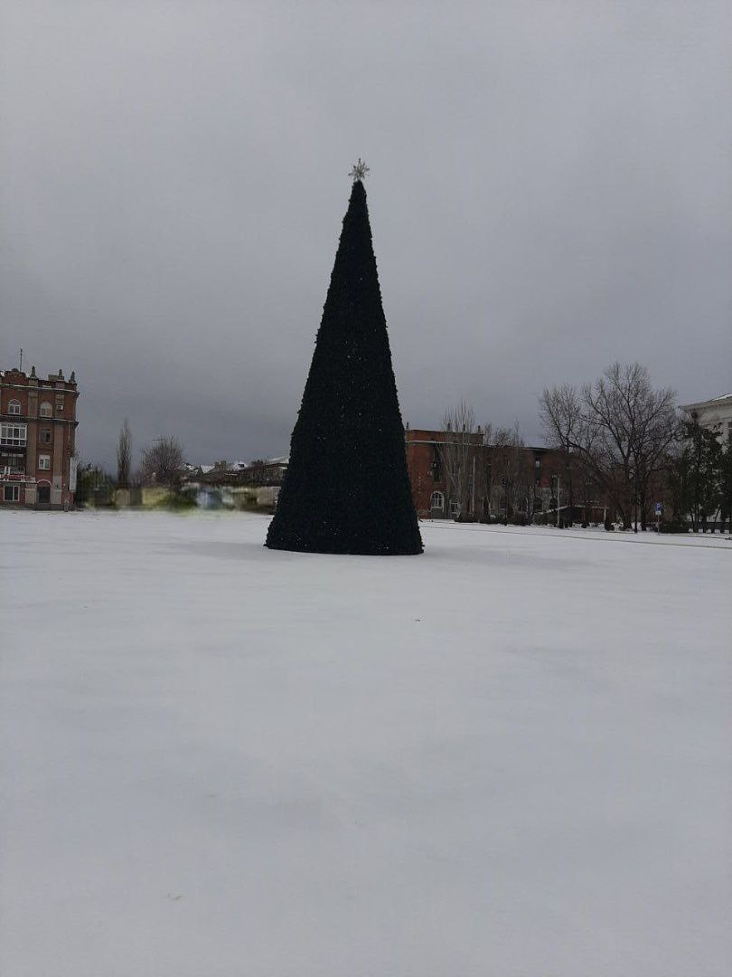 На кадрах показано, як на пустельній площі окупанти поставили новорічну ялинку, тільки, за словами очевидців, "ялинка є, а відчуття свята зовсім немає".