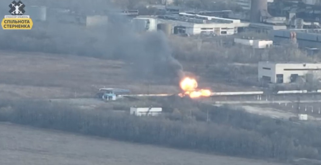 Українські військові показали відео про знищення російського танка. Як уточнює Telegram-канал "Трикутник", локація – Лисичанський НПЗ, Луганська область.