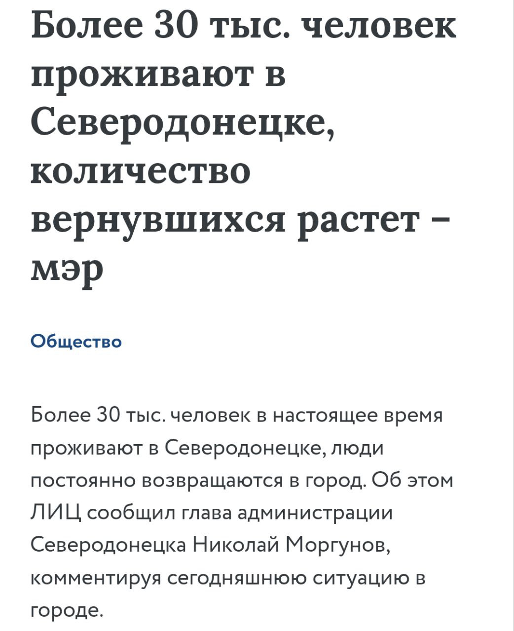 Тим часом так званий мер Моргунов знову завів пісню про процвітаючий Сєвєродонецьк і людей, які "масово" повертаються в місто.