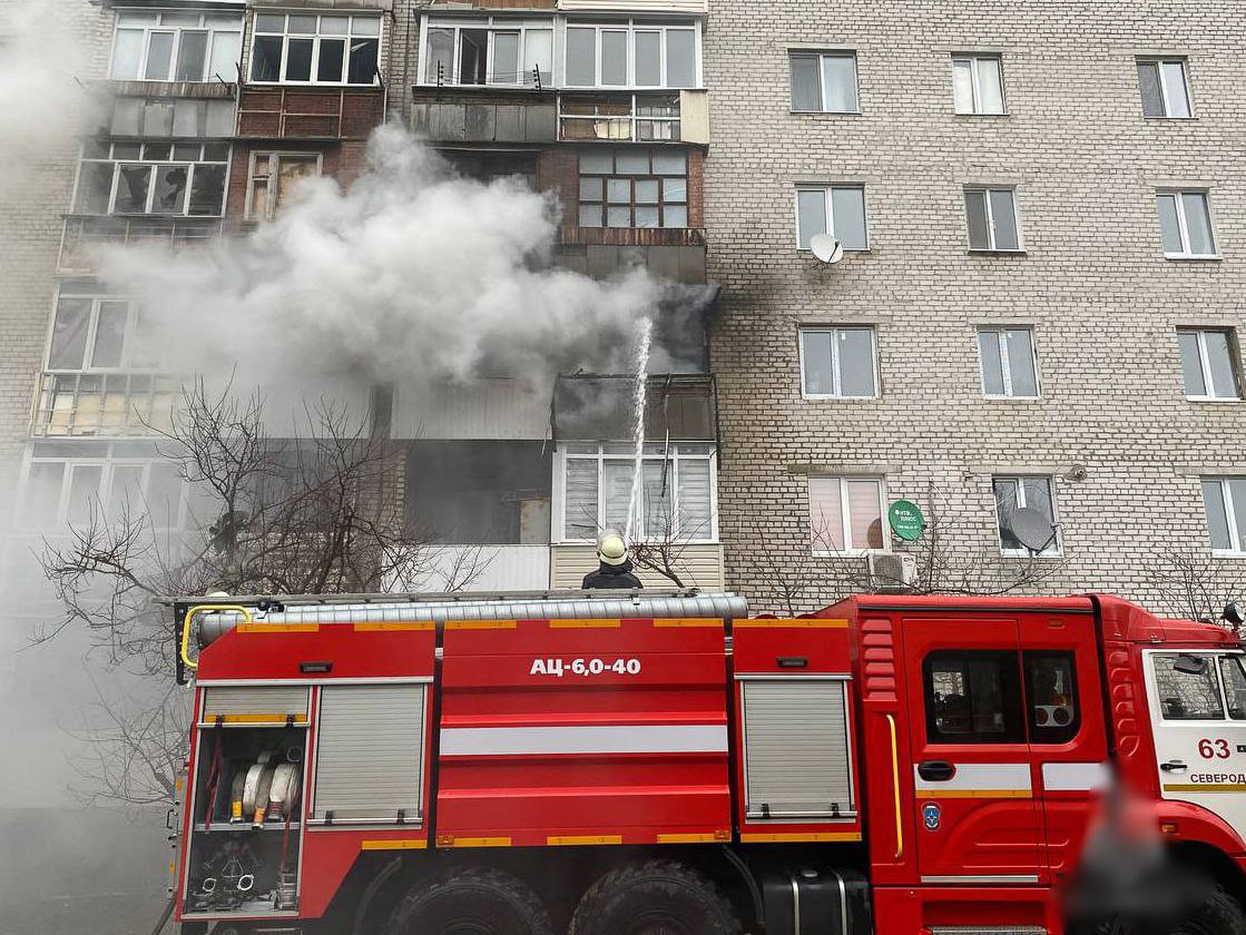 На цей раз пожежники загасили полум'я о 10:24. За даними окупантів згоріла тільки лоджія. Причини не називають. Без постраждалих.