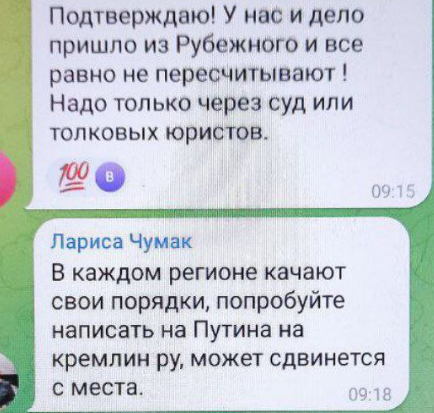 "У нас пенсійна справа прийшла з Рубіжного і все одно не перераховують. Треба лише через суд чи тямущих юристів".