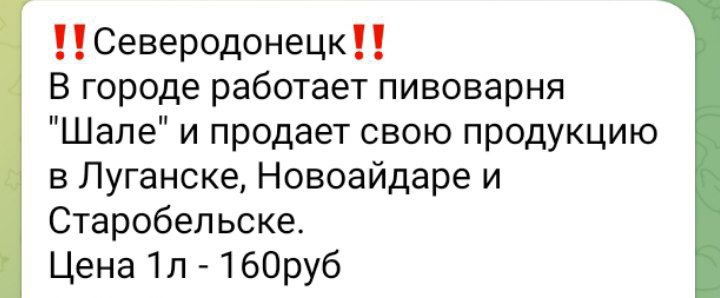 Натомість у місті працює броварня "на експорт". Як пишуть очевидці, "продукцію продають у Луганську, Новоайдарі та Старобільську". Мабуть, у цих містах "сухий закон" не діє.