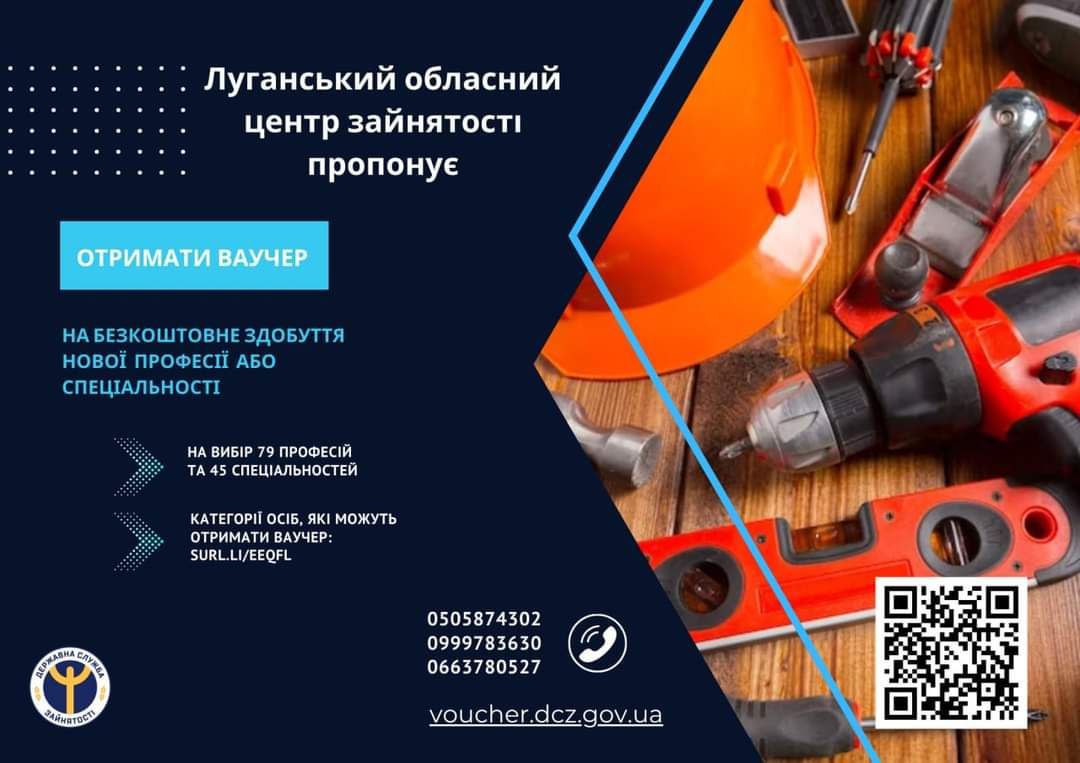 Звертайтесь за телефонами 0505874302, 0999783630, 0663780527 або подайте онлайн-заявку на отримання ваучера за посиланням https://voucher.dcz.gov.ua/, вказавши Луганський обласний центр зайнятості бажаним для отримання ваучера.