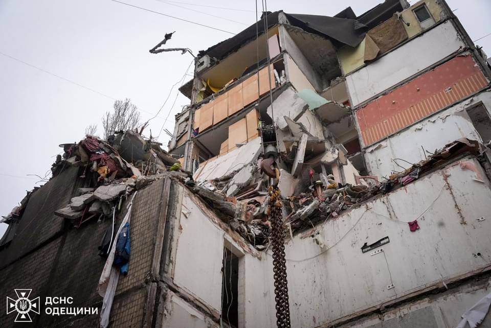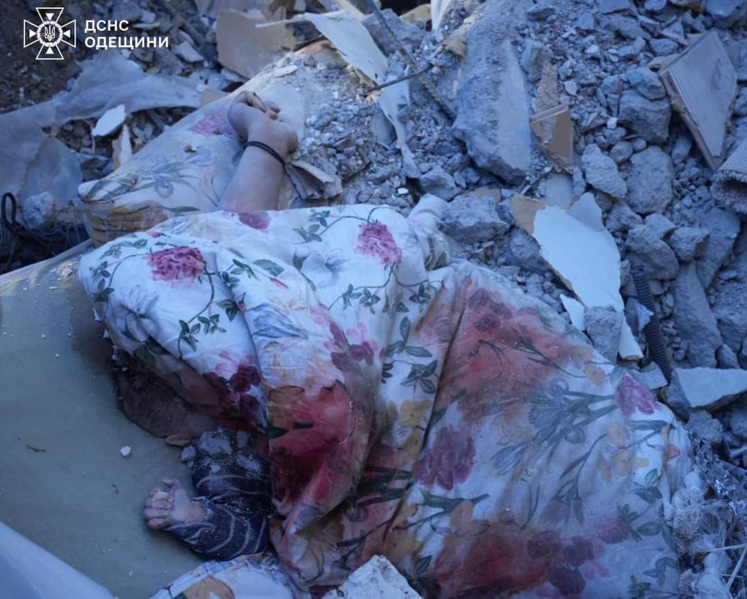 В Одесі кількість жертв від влучання російського безпілотника у багатоповерхівку зросла до семи. З-під завалів рятувальники дістали тіло мами з немовлям.