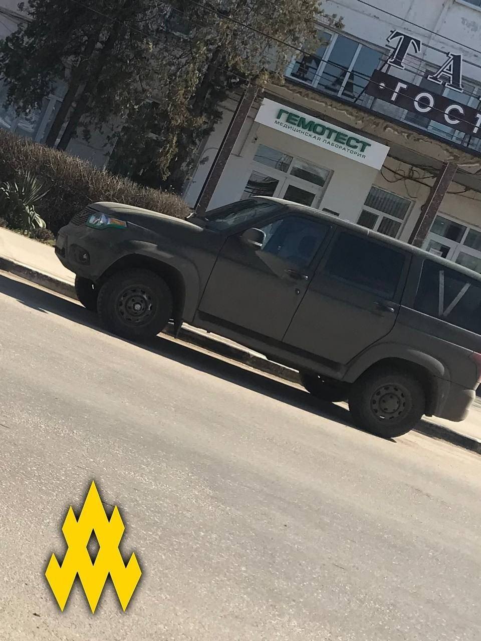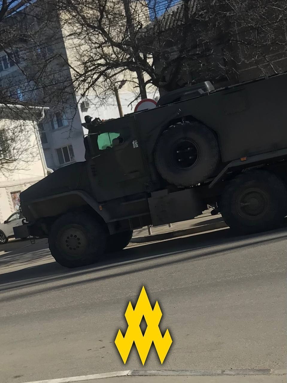 Також помічено безліч техніки з позначенням угруповання військ "Дніпро" (білий трикутник).