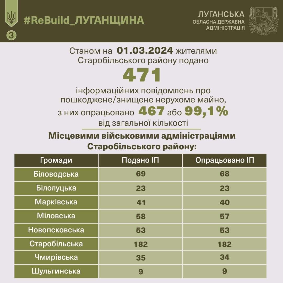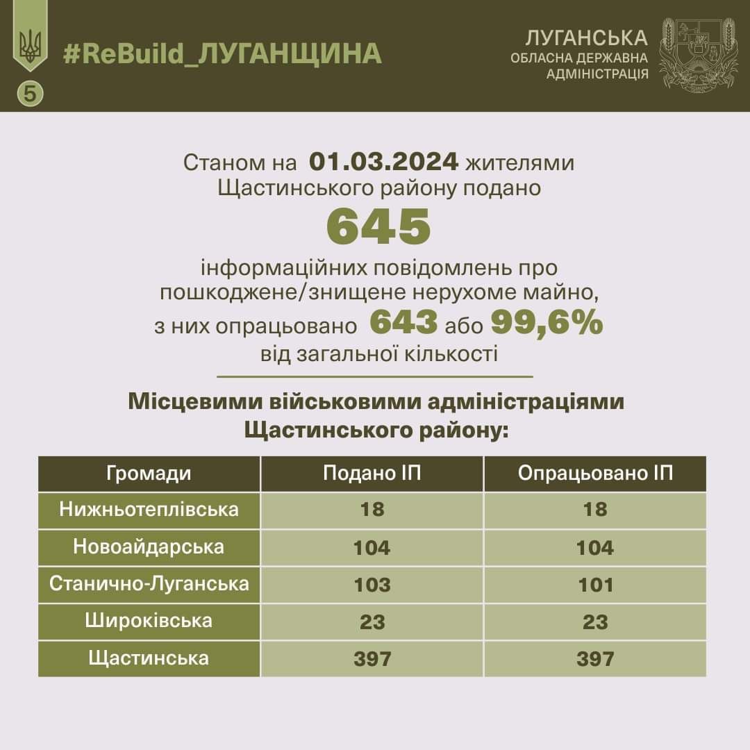 Понад 640 повідомлень про руйнування житла подали жителі Луганської області протягом минулого місяця.