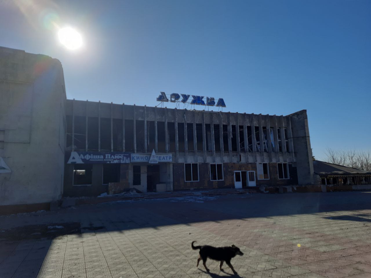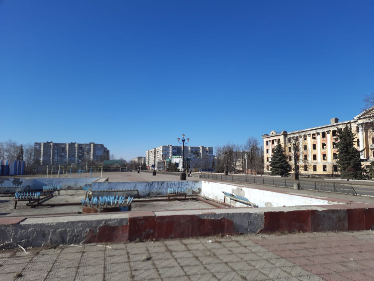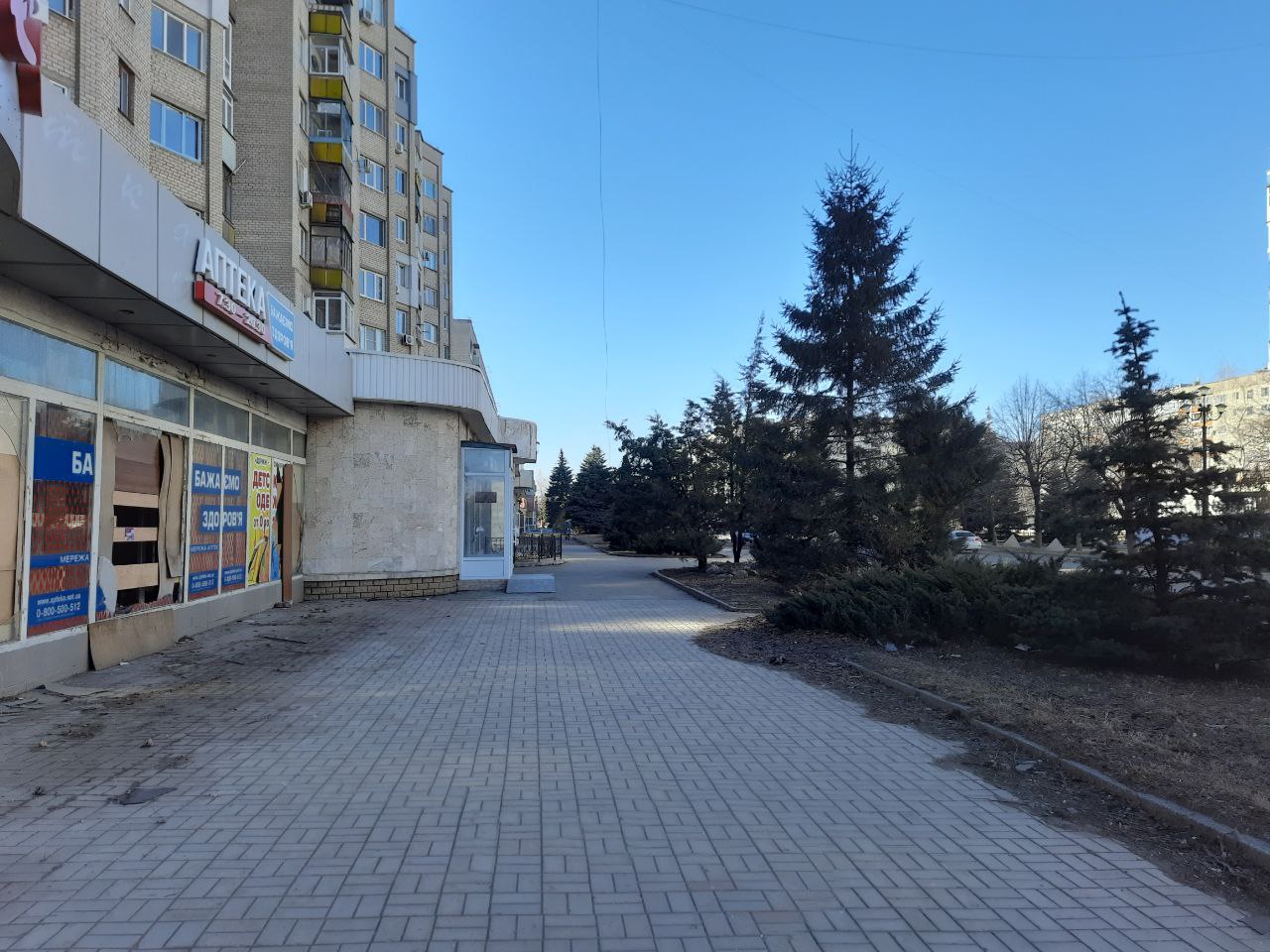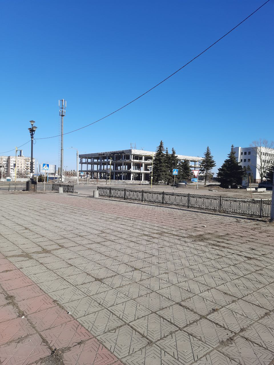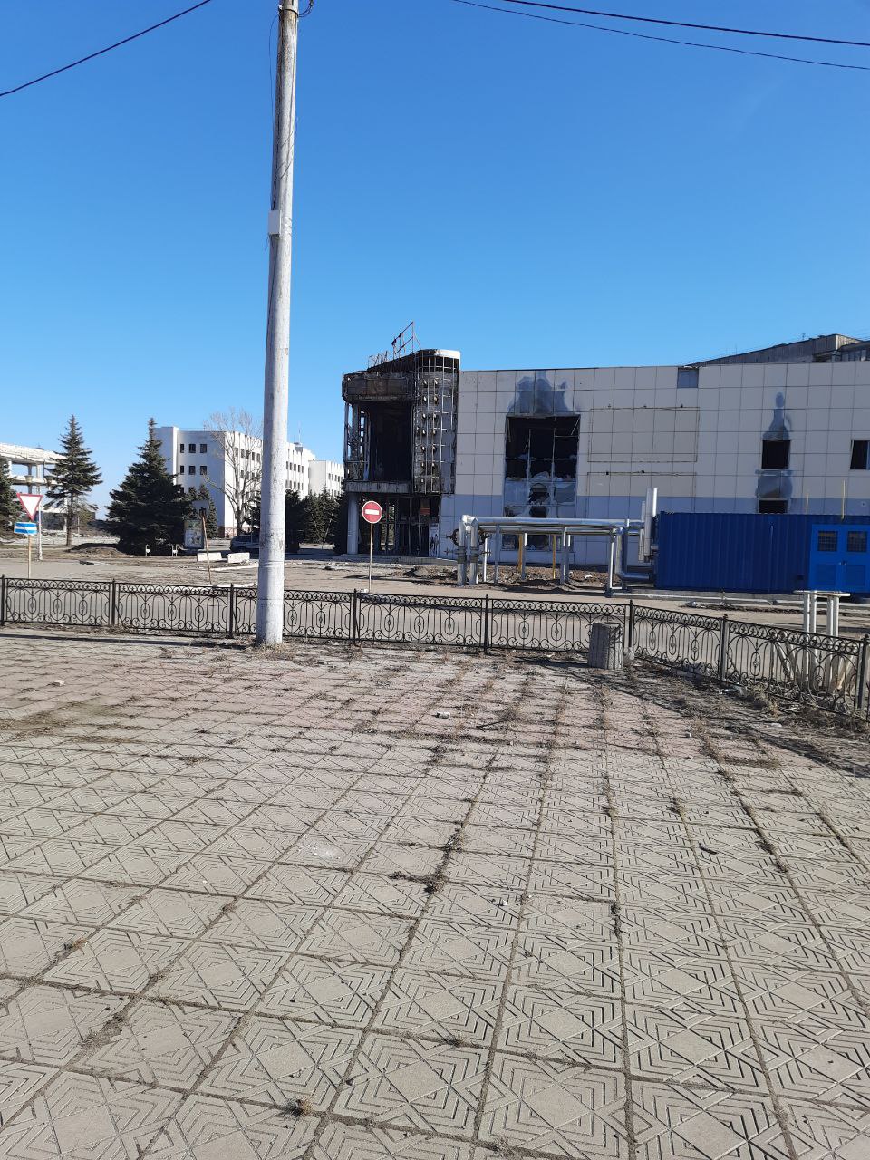 На них безлюдний проспект Перемоги: центральна площа міста, зруйнована будівля ТЦ "Кристал", кінотеатр "Дружба", гірничий технікум, р-н пам'ятника "Танк".