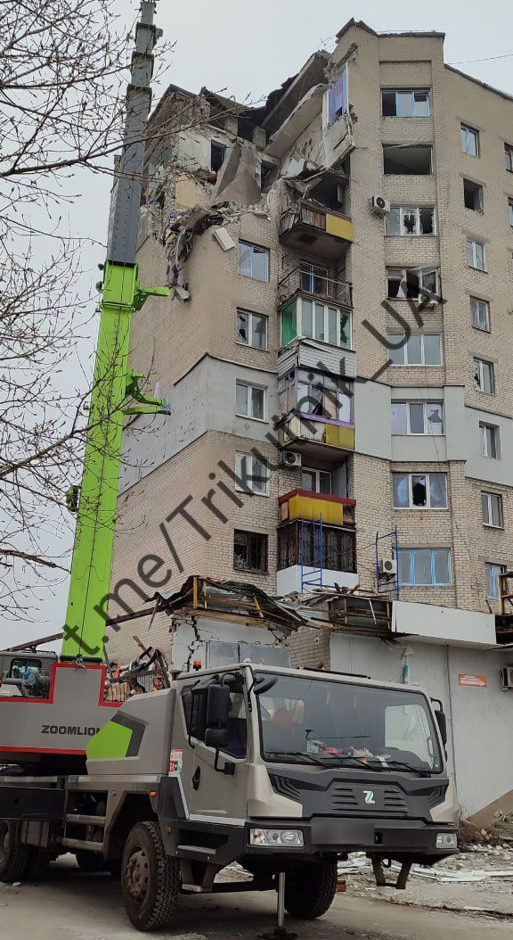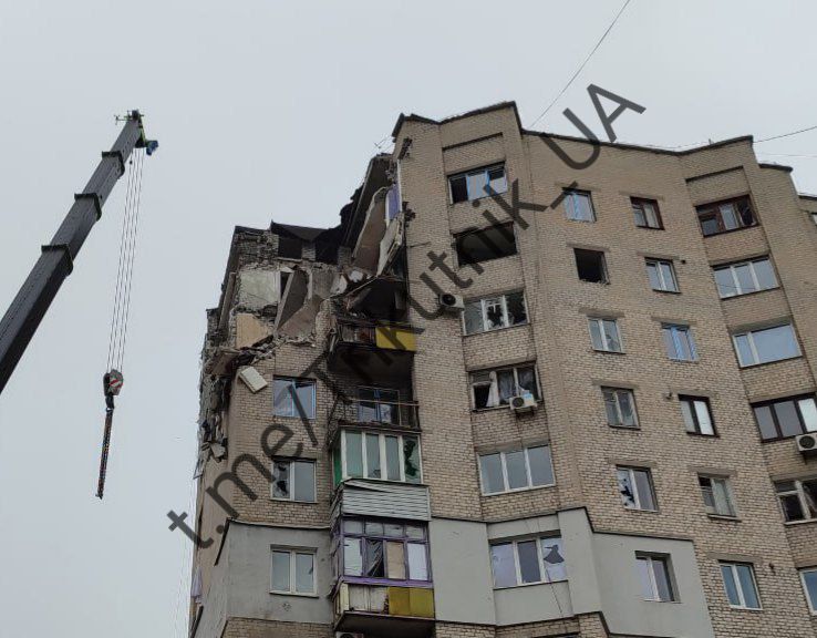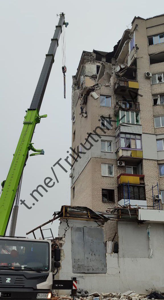 За повідомленнями від місцевих - вночі прилетіло в район харчової фабрики. В одному з будинків склало 8-9 поверхи. Повідомляється про одного загиблого цивільного.
