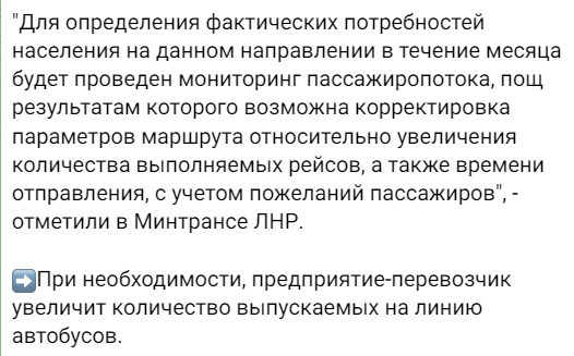 "Вартість проїзду за маршрутом "Луганськ АС-1 - Лисичанськ АС" складає 191 руб.", - йдеться у повідомленні.