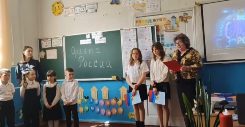 Також у мережі з'явилося відео, як у Старобільському районі в селі Проїждже, учнів початкових класів прийняли до організації "Орлята Росії".