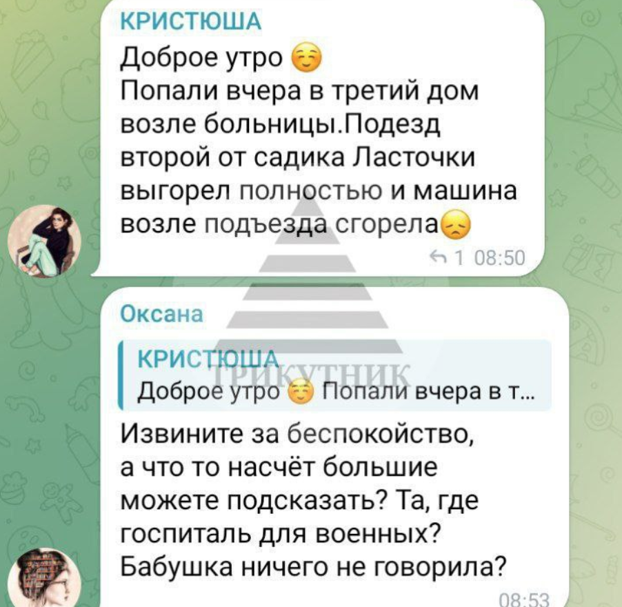 У публікації було використано матеріали Telegram-каналу "Трикутник ".