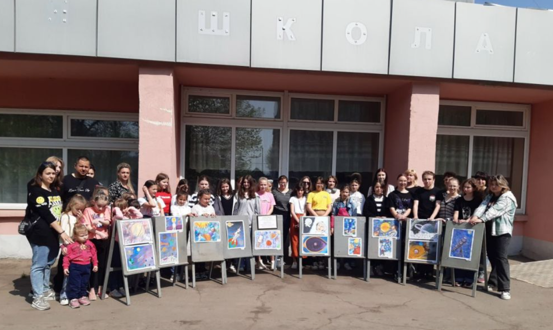 "Учні організували виставку дитячих творчих робіт та малюнків на асфальті. У них діти відображали своє уявлення про космос та позаземне життя", - йдеться у повідомленні.