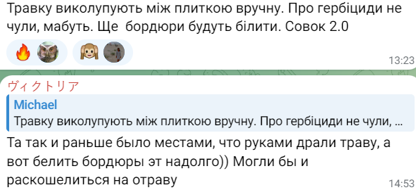 На кадрах видно, як працівники щипають траву руками між плиткою. Як коментують фото в мережі, "про гербіциди, напевно, не чули...".