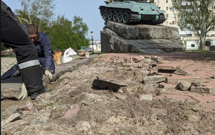 У захопленому Лисичанську на Луганщині триває "прибирання" міста. Окупанти показали, як упорядковували територію біля пам'ятників.