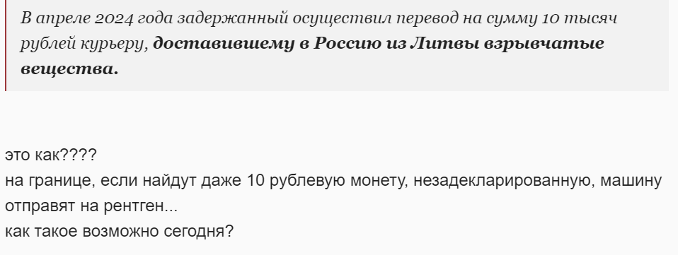 За версією російської спецслужби, затриманий спостерігав за будинком Прозорова, а невдовзі нібито перевів кур'єру 10 тисяч рублів за доставку з Литви "засобів поразки". Вказівки йому нібито давала "агент СБУ" Ярослава Хрестіна, колишня мешканка Рубіжного.