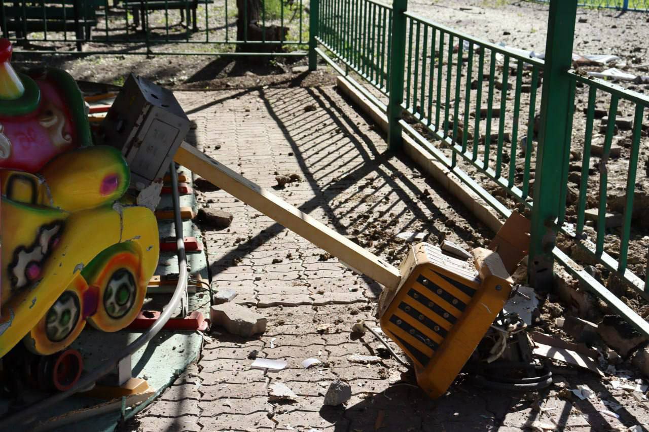 "Близько 01:01 місто опинилося під вогнем. Під обстрілом опинилася територія міського парку культури та відпочинку "Гірник". Один зі снарядів упав на пішохідну доріжку поряд з дитячими атракціонами в самому центрі. Другий - поряд на алеї парку", - повідомляють окупанти.