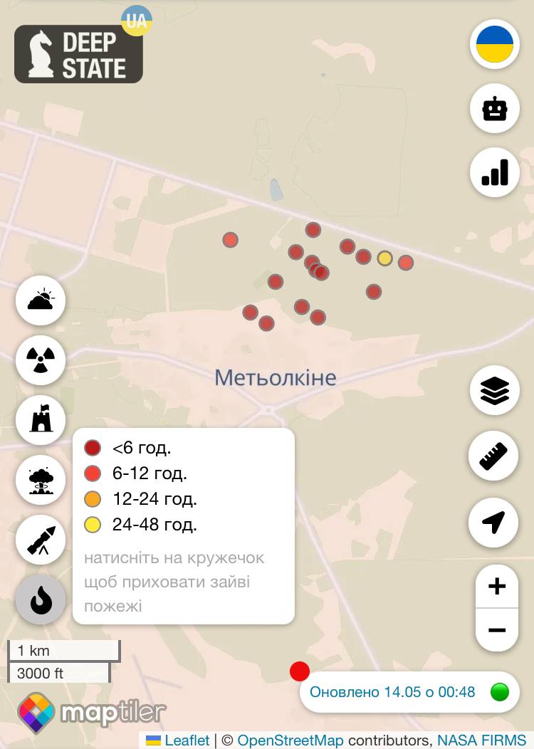 Пожежа, яка розпочалась ще 5 травня розгорілася сильніше. Сьогодні супутники реєструють осередки вогню вже в Метьолкіному. Є загроза поширення пожежі в напрямку ЖК "Камелот" тимчасово окупованого Сєвєродонецька Луганської області.