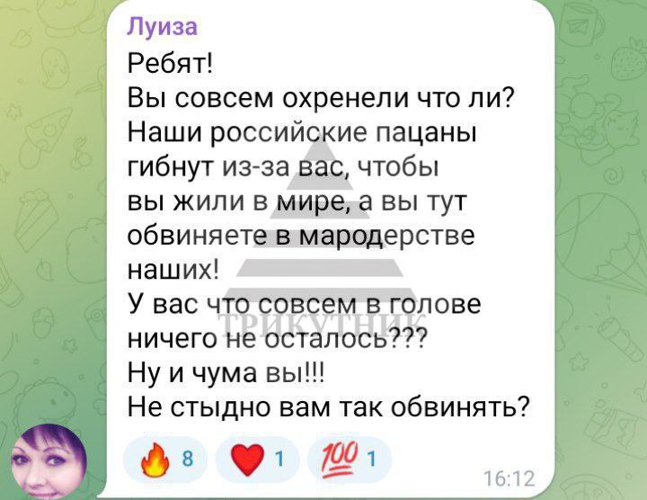 Тим часом у мережі росіянка глибоко обурена звинуваченнями у мародерстві російських "визволителів".
