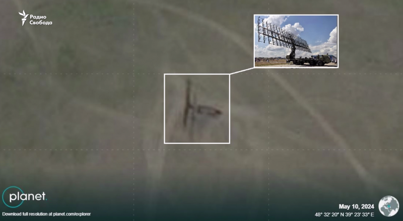 При цьому на кадрі від 10 травня на цій локації можна побачити частини радіолокаційного комплексу "Небо-М", призначеного для виявлення аеродинамічних і балістичних об'єктів на середніх та великих висотах.