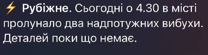 Також учора в Рубіжному було чути серію вибухів. Перші прогриміли близько 4-ї ранку, об 11:00 пролунав ще один потужний вибух.