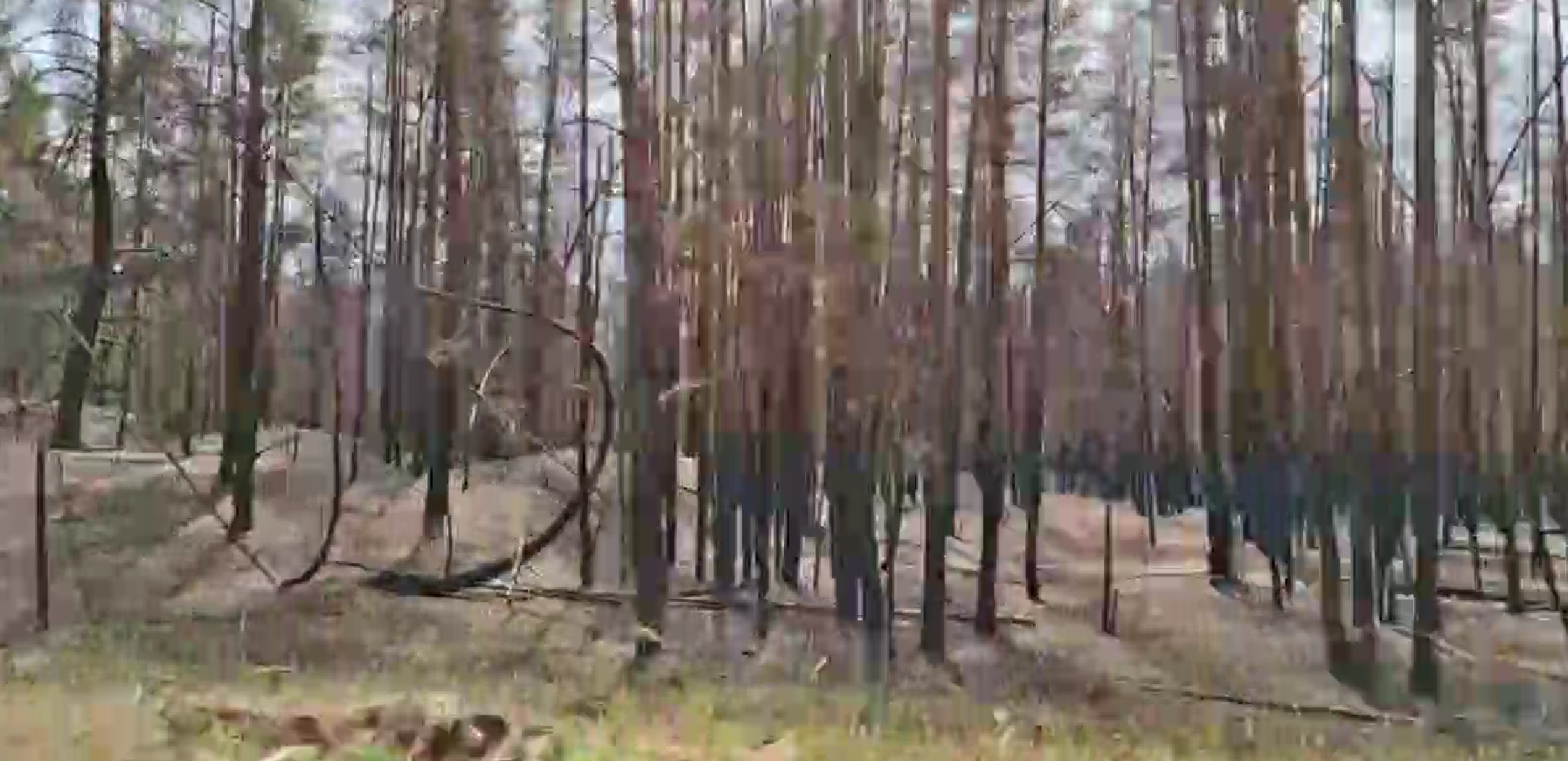 У мережі з'явилися нові кадри з окупованого Сєвєродонецька Луганської області. На них показаний ліс навколо міста після лісової пожежі.