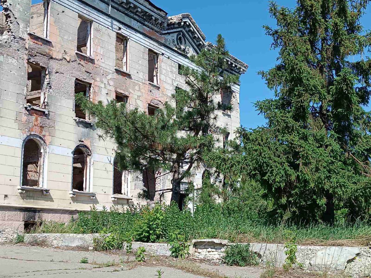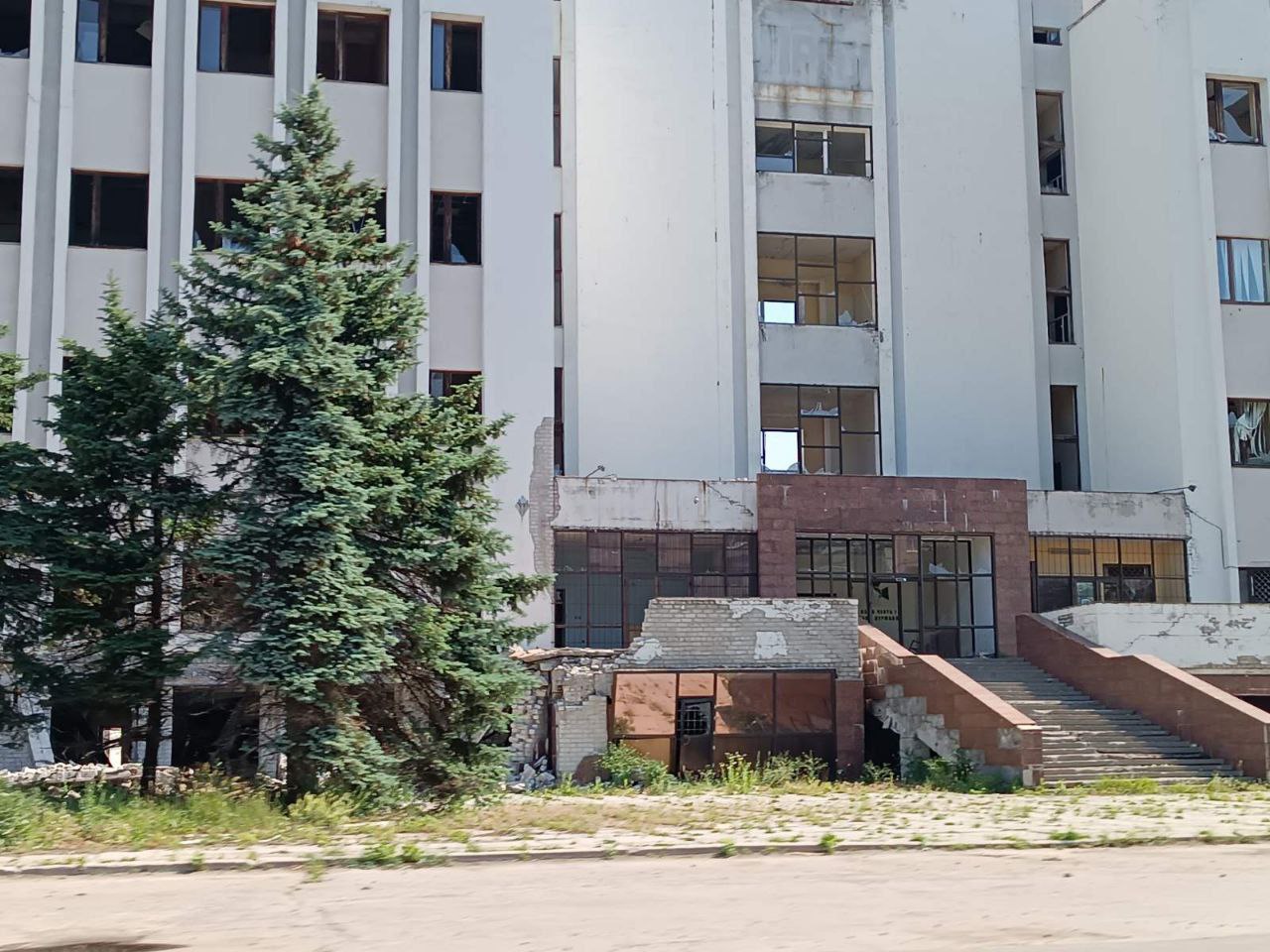 Саме на цих світлинах можна побачити будівлі, які зазнали значних пошкоджень ще у 2022 році й по цей час не "відновлені" окупантами.