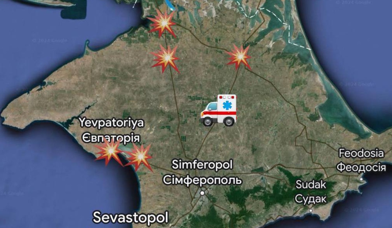 4 потужні вибухи, від яких "стіни тремтіли", чули в Євпаторії та Сакському районі. Є припущення про "прильот" по військовому об'єкту біля села Наумівка Сакського району - ця інформація не підтверджена. У селі Михайлівка Сакського району синхронно з вибухами зникла електрика.