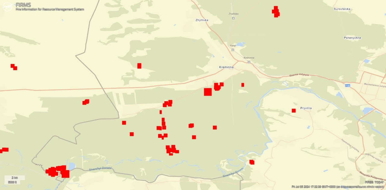 По-перше, величезна пожежа на північному сході від Кремінної значно зменшилась. Це позитивний розвиток, оскільки цей район був одним з найбільш постраждалих. Причини цього зменшення поки не уточнюються. По-друге, пожежа в східній частині Кремінної повністю зникла.