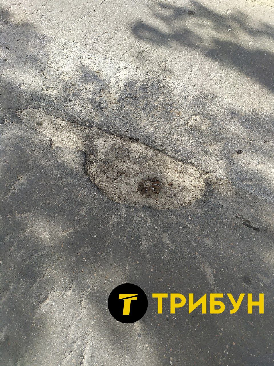 Також було знято одну з доріг у місті, яка перебуває у жахливому стані. В асфальті все ще стирчить снаряд, нагадуючи про воєнні дії та небезпеку, яка ще не минула. Цей знімок підкреслює, наскільки повільно і важко проходить процес "відновлення", а також як важко місцевим жителям пересуватися містом.