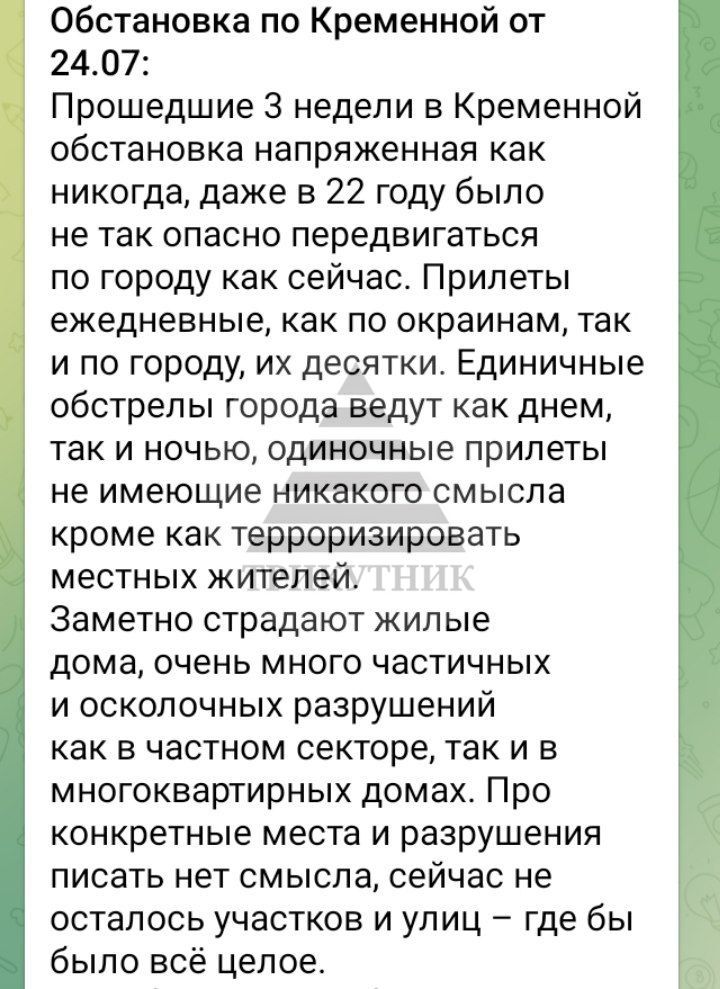 У той час як сепаратистські джерела намагаються створити враження стабільності та відновлення у Кремінній, реальні умови життя у місті залишаються вкрай важкими.