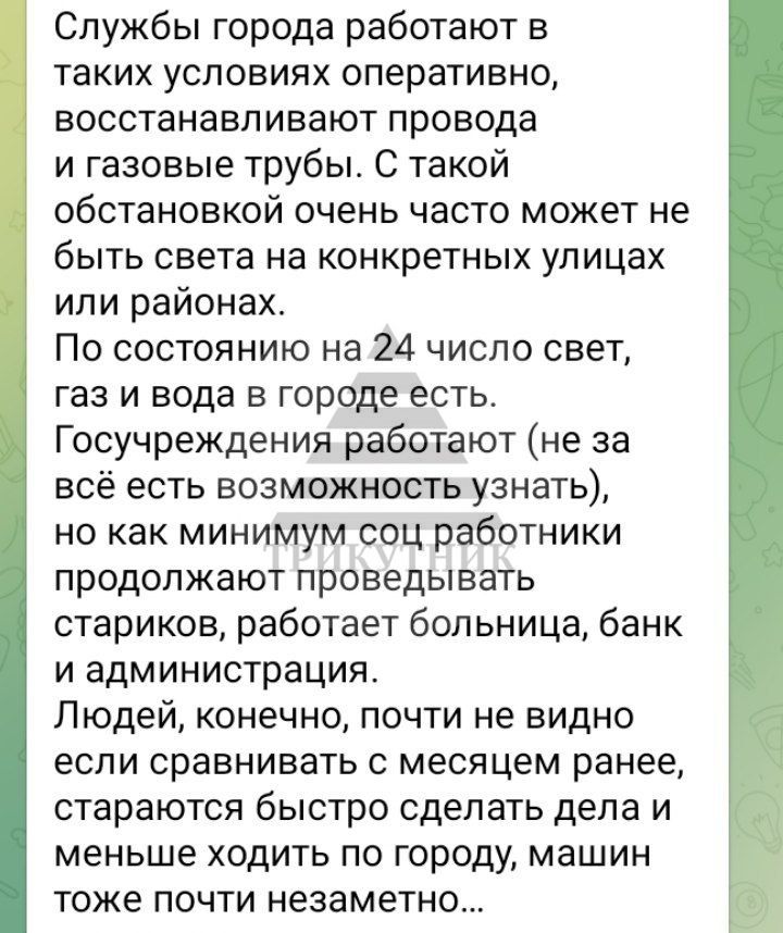 Обстріл ведеться як вдень, так і вночі, що посилює психологічний тиск на місцевих жителів. Попри твердження про "налагодження" життя, місто продовжує страждати від руйнувань.