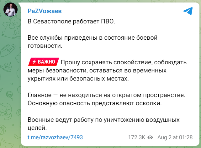 Про це пише "Кримський вітер" з посиланням на окупаційного "гауляйтера" Севастополя Михайла Развожаєва, передає Час Пік.