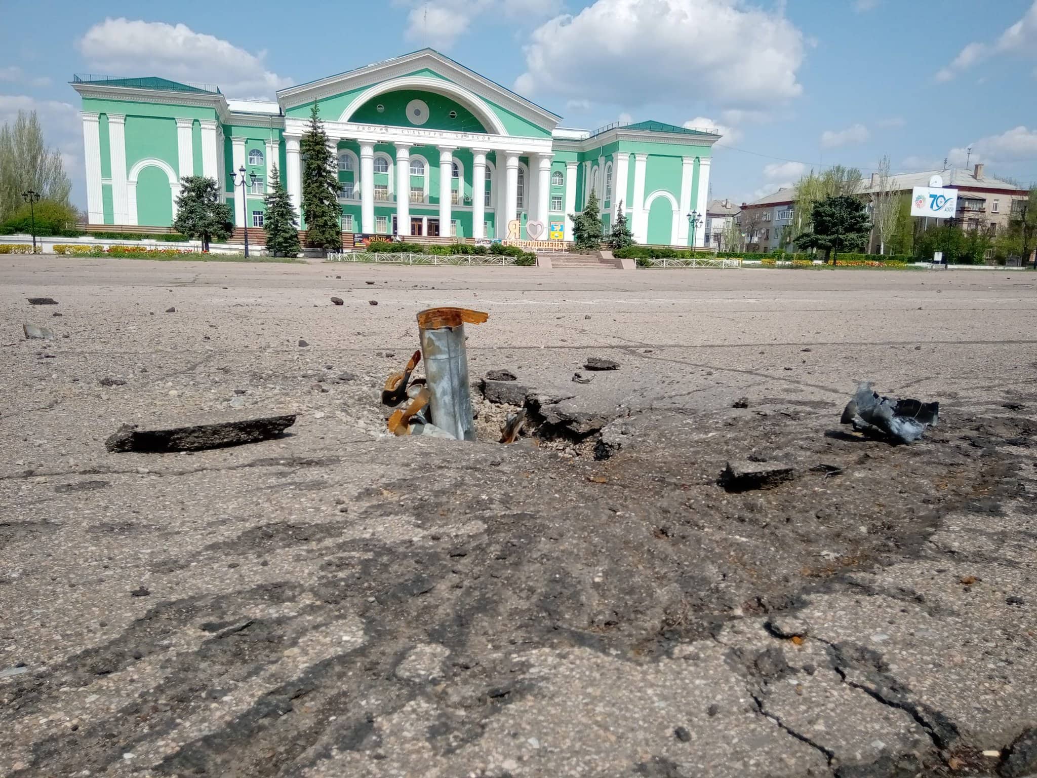 Також можна помітити, що жодних "натовпів людей" у Сєвєродонецьку немає. Місто порожнє, деякі будинки стоять повністю порожні.