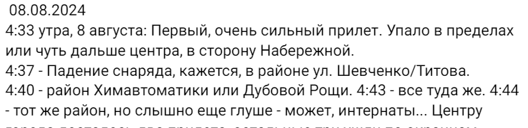 "Центру міста дісталося два прильоти, решта трьох пішла околицями - в районах Хімавтоматики та Дубового Гаю. Є повідомлення про пошкодження будівель та інфраструктуру", - йдеться в повідомленні.