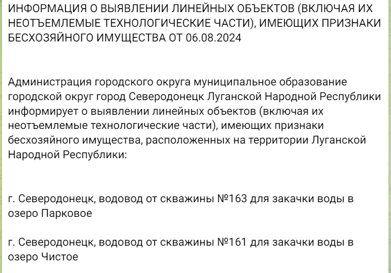 Подібне визнання майна "безгоспним" може бути частиною стратегії, спрямованої на поділ та продаж міського майна. В умовах окупації такі кроки часто використовуються для прискорення демонтажу та присвоєння ресурсів, що ставить під загрозу майбутнє інфраструктури Сєвєродонецька.