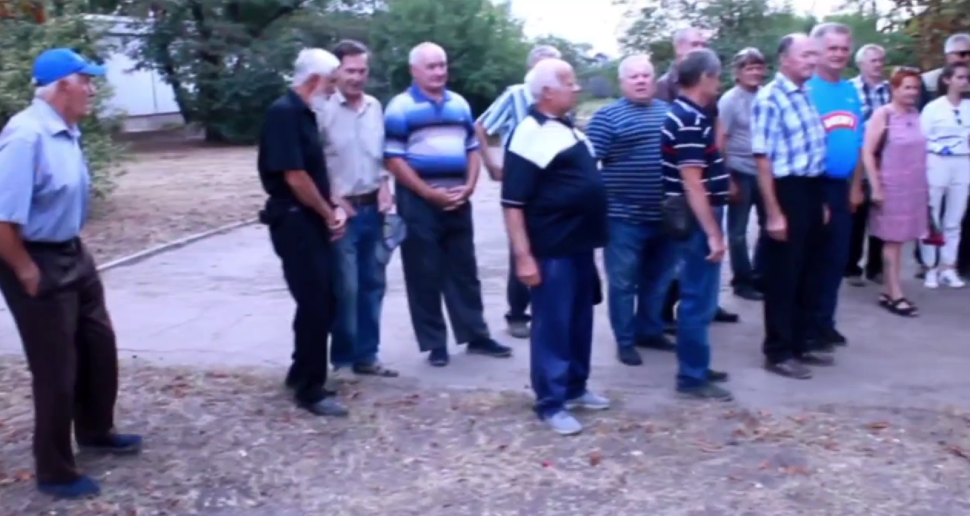 На знімках видно невелику групу місцевих шахтарів, близько 10 людей, які зібралися біля меморіалу. Люди, переважно похилого віку, стоять в очікуванні поздоровлень. На одному з фото, ймовірно, представник "адміністрації", виступає перед присутніми. На іншому знімку видно, як учасники покладають квіти на пам'ятник.