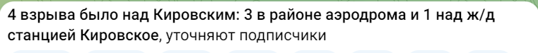 Паблік "Кримський вітер" повідомляє, що три з цих вибухів сталися в районі аеродрому, а один - на околицях залізничної станції, передає Час Пік.