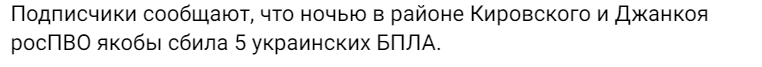 У ніч на 30 серпня у тимчасово окупованому Криму пролунало кілька вибухів, які сколихнули місцевих жителів. За інформацією з Кіровського, на сході півострова, після другої години ночі було чути чотири "бавовни".