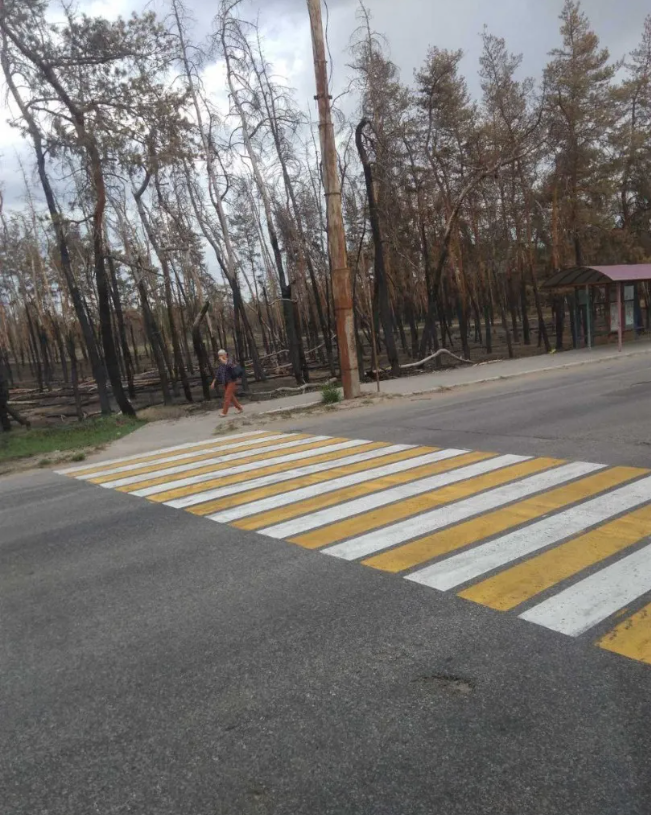 Особливу увагу привертає фотографія з ділянкою лісу, що вигоріла, на Шосе Будівельників, який постраждав від недавніх пожеж 2 серпня 2024 року.